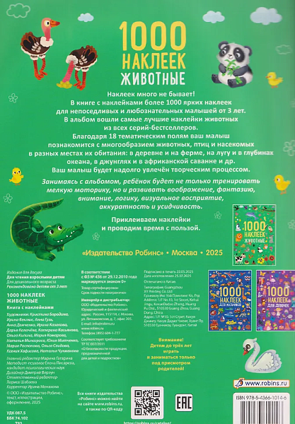 Наклеек много не бывает! В книге с наклейками более 1000 ярких наклеек для непоседливых и любознательных малышей от 3 лет. В альбом вошли самые лучшие наклейки животных из всех серий-бестселлеров.