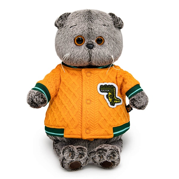 Басик в шикарном бомбере из рифлёного трикотажа цвета апельсина.