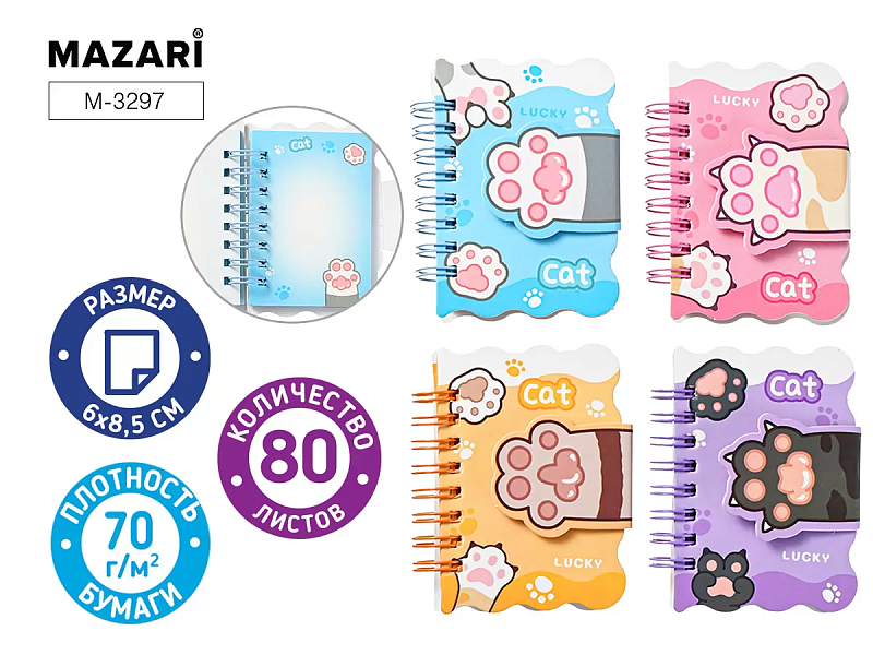 Блокнот на евроспирали ЛАПКИ 6х8.5 см, 80 л M-3297
