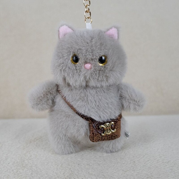Брелок мягкий "Котик с сумкой" серый BL701228105GR