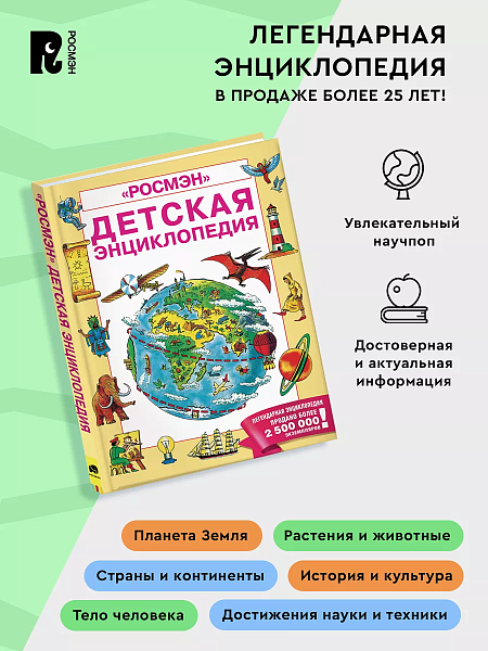 Легенда детской научно-популярной литературы! «Детская энциклопедия РОСМЭН» издается с 1996 г. За два с половиной десятилетия продано более 2,5 миллионов экземпляров. Каждое переиздание выходит в уточненными, дополненными и актуализированными сведениями.
