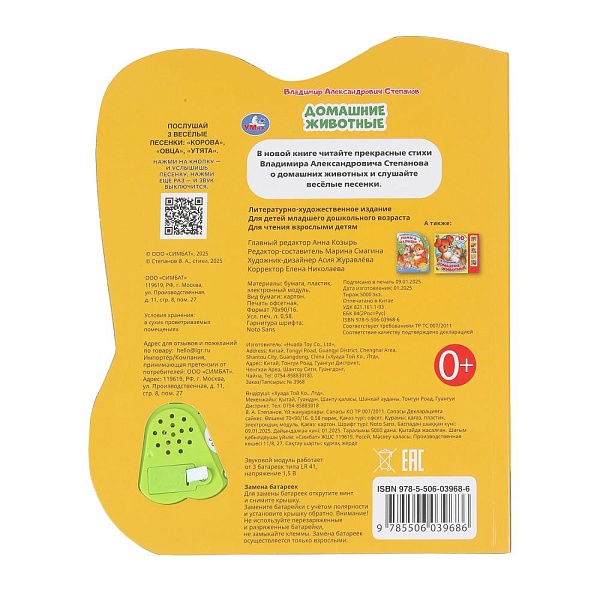 Музыкальная книга «В. А. Степанов. Домашние животные» ТМ «УМка» станет отличным подарком для маленьких любителей животных: