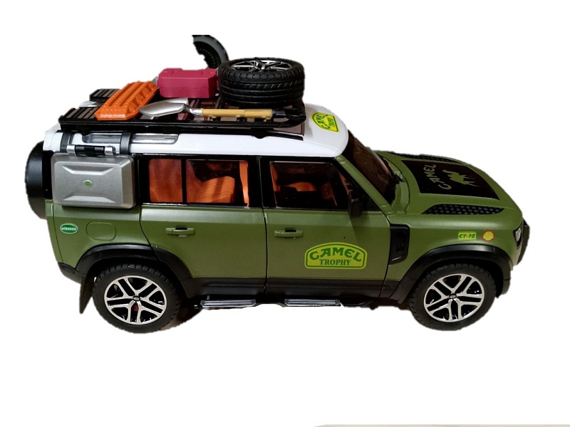 Коллекционная модель Land Rover DEFENDER 110 Camel Trophy NEW 1:24 (металл, свет, звук,аксессуары )