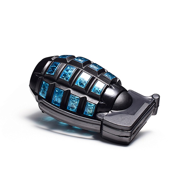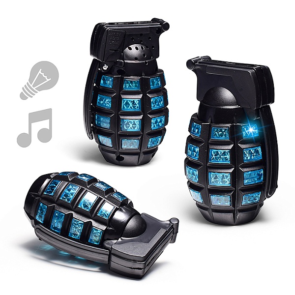 • При нажатии на чеку светится корпус, предупреждающий звуковой сигнал и звук взрыва.