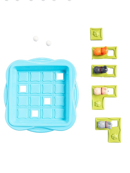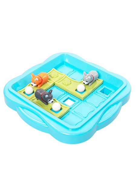 2. Перемещайте фишки со щенками по игровому полю горизонтально и вертикально так, чтобы все шарики попали в отверстия.