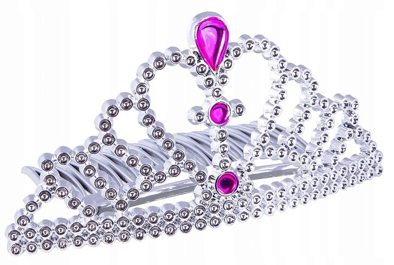 Диадема (1 шт.) - серебристого цвета с розовыми декоративными элементами и гребнем для крепления.