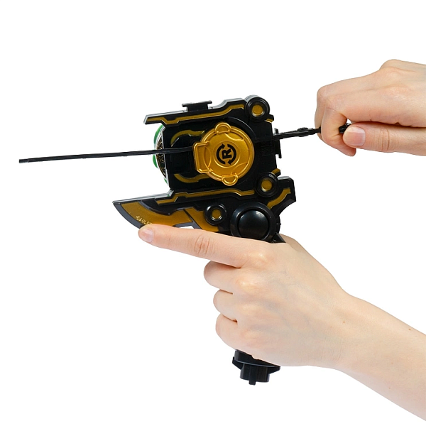 В комплект входят: волчок, пусковая установка с рукояткой, лента для запуска, сменный наконечник, монтажный инструмент, инструкция. Упаковка — коробка с окном 26×7×22 см.