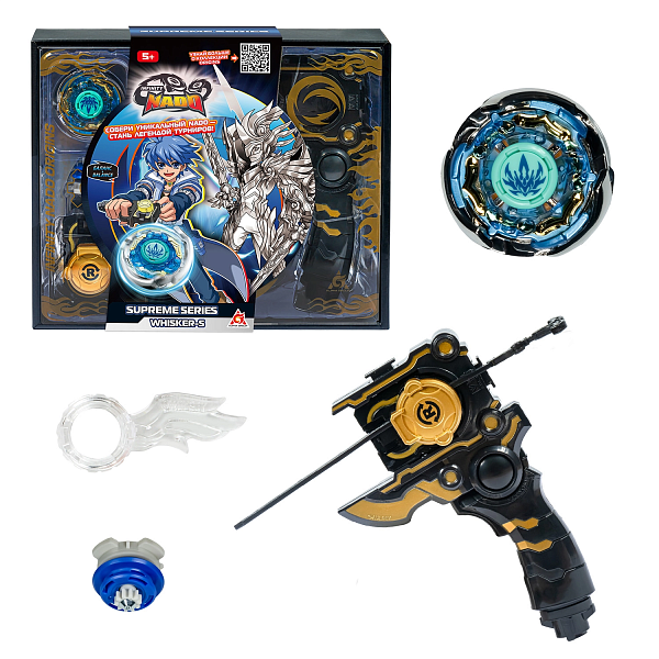Металлический волчок Infinity Nado Суприм Whisker Небесный Вихрь принадлежит Джину и состоит из пяти частей: аватара Nado, верхнего кольца, тройного атакующего кольца, оси и наконечника. Главным его свойством является баланс, который обеспечивает стабильность на арене. Кроме того, волчок оснащён 3 усиленными режимами, позволяющими адаптировать тактику в ходе турнира.