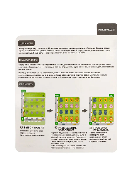 Игра способствует развитию стратегического мышления, концентрации внимания и памяти. Ребенок учится просчитывать ходы, находить решения и вырабатывать усидчивость. Яркие персонажи в виде животных делают процесс более эмоциональным и доступным, что помогает формировать интерес к интеллектуальным играм.