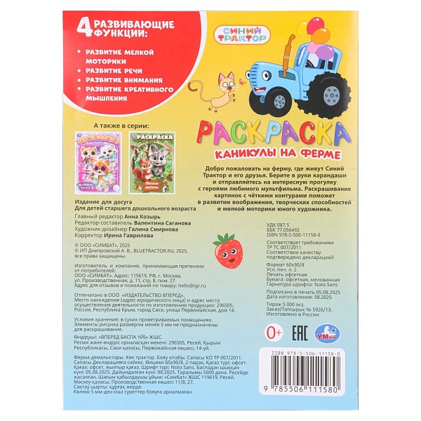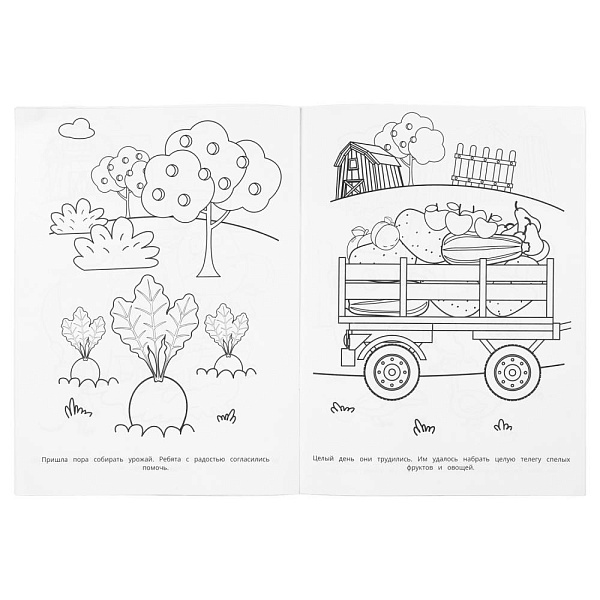Раскраска «Каникулы на ферме» ТМ «УМка» – отличный подарок для юных поклонников мультсериала «Синий Трактор»: