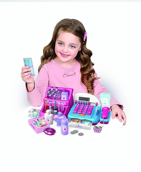 Покупатели смогут расплатиться кредитной карточкой или русскими банкнотами и монетками, а хозяйка рассчитает их на кассе с настоящим калькулятором и сканером и поблагодарит за покупку!