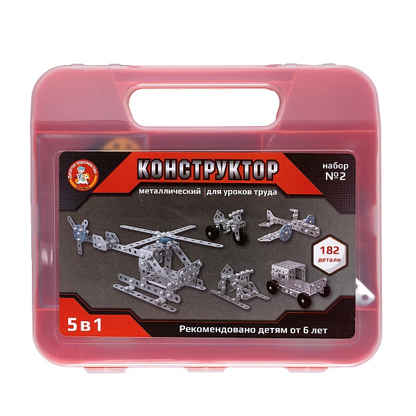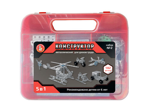 Конструктор металлический для уроков труда 5 в 1 №2 в пластиковом чемоданчике 02455