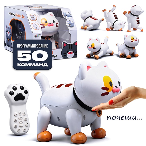 Игрушка котенок выполняет команды, реагирует на пульт управления.