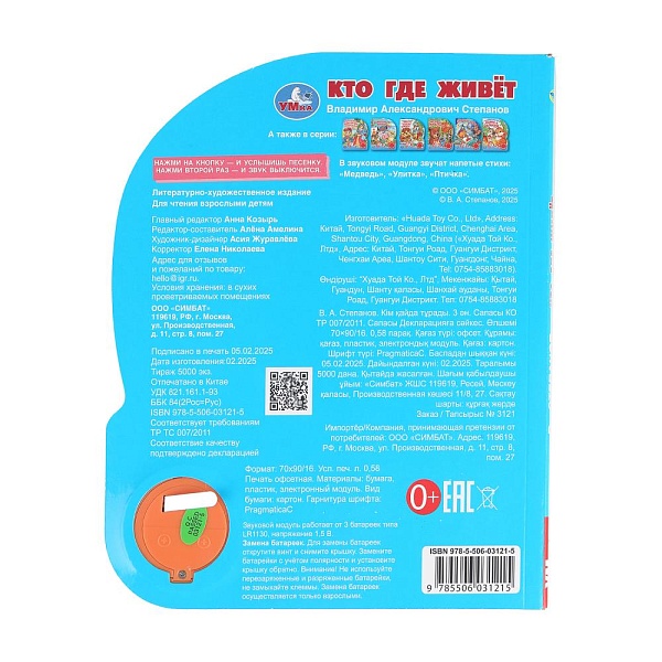 Музыкальная книга «В. А. Степанов. Кто где живёт» ТМ «УМка» станет прекрасным подарком для малыша: