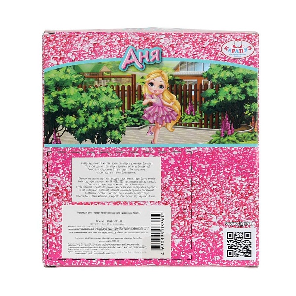 Очаровательная куколка Аня одета в милый сарафан пёстрой расцветки. Одежда и обувь легко снимаются и надеваются. У Анечки длинные красивые волосы, которые хозяйка куклы сможет заплетать в разные причёски. Для более интересной игры с куклой в наборе предусмотрены дополнительные комплекты одежды и аксессуары.