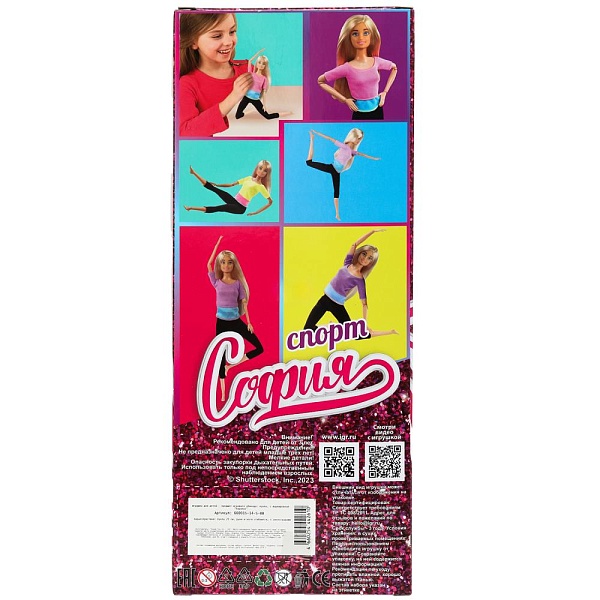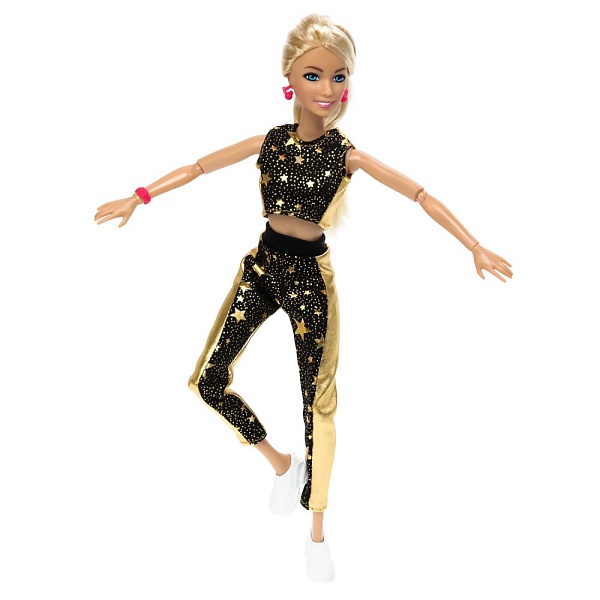 Модница София одета в чёрный спортивный костюм с золотыми звёздами. Образ дополняют яркие серьги, стильные часы и белые кроссовки. Одежду и аксессуары легко снять и надеть. С такой модной куклой девочке будет интересно и весело играть: благодаря тому, что руки и ноги куклы подвижны, им можно придать любое положение. У Софии светлые длинные волосы, которые хозяйка куклы сможет заплетать в разные причёски. Детально проработанный дизайн игрушки вдохновит девочку на новые игровые сюжеты.