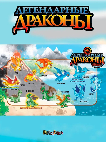 Погрузись в магический мир Легендарных Драконов, где живут драконы трех стихий – Земли и Леса; Огня; Воды и Воздуха. Это королевство размером с континент, с подземными пещерами и богатыми природными ресурсами, где обитают самые сильные и героические животные.