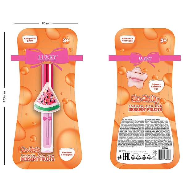 Lukky Dessert Fruits, глянец для губ арбузный, с колечком Т27249