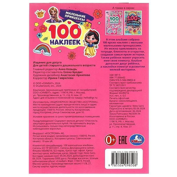 Альбом наклеек «Маленькие принцессы» из серии «100 наклеек» ТМ «УМка» непременно понравится ребёнку: