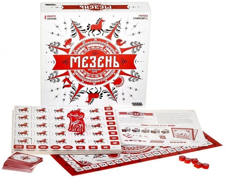Игра Мезень основана на культурных мотивах и стиле мезенской росписи, что получил отражение во всех компонентах – от карт до поля и жетонов. Хотя за пределами родной Архангельской области это направление малоизвестно, оно уникально и самодостаточно. Роспись впитала в себя опыт целых поколений и позволяет прикоснуться не только к истории, но и к самой философии людей того времени. Выполняя заказы из раунда в раунд, вы будете составлять комбинации из символов зверей, получать очки и использовать талисманы, чтобы стать самым известным мастером!