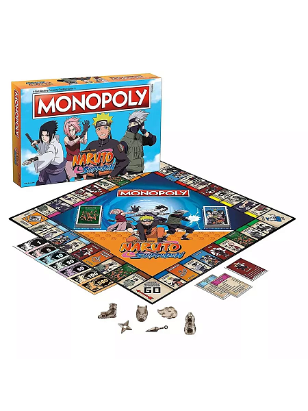Настольная игра «Монополия. Наруто» Hasbro WM00167-RUS. Стать одним из непобедимых синоби в монополии Наруто. Наберите лучших ниндзя, чтобы показать Хокаге, что вы справляетесь с задачей лидерства. Берите карты «ТРЕНИРОВКА» и «МИССИЯ», развивайте свои навыки и знакомьтесь с известными героями из любимых команд и деревень. Monopoly Naruto содержит коллекционные фигурки и предметы, в том числе сюрикены, маску Анбу, порции рамена и онигири, а также множество других сюрпризов, которые обязательно понравятся фанатам Наруто!