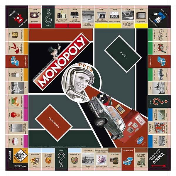 Настольная игра «Монополия. СССР» WM01019-RUS - это уникальная семейная игра, которая перенесёт вас воспоминаниями в советские времена. Помимо других металлических фишек к игре прилагается уникальная фигурка в виде космонавта.
