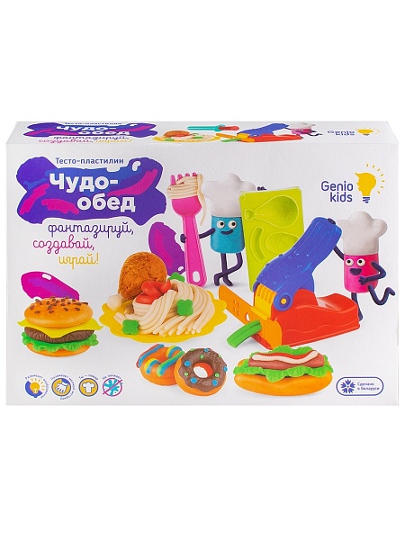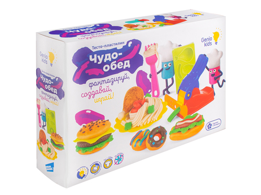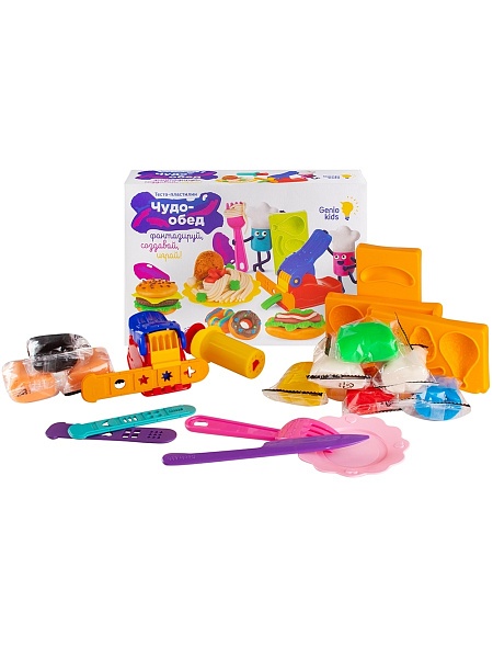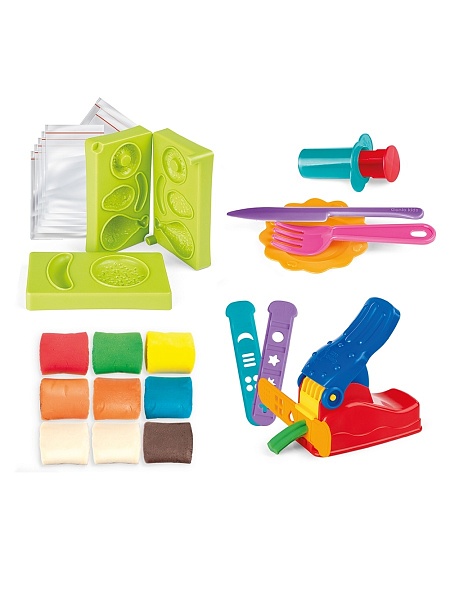 В наборе 8 кусочков теста-пластилина и МНОГО аксессуаров-помощников, с которыми обед точно удастся!