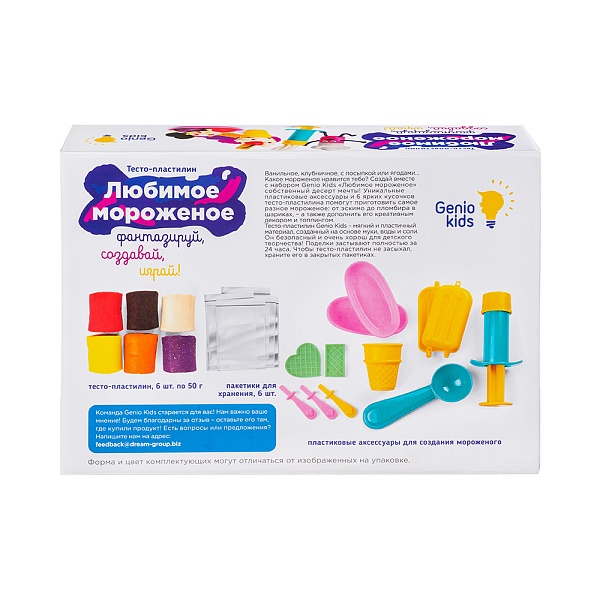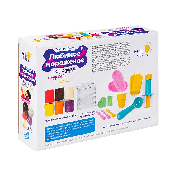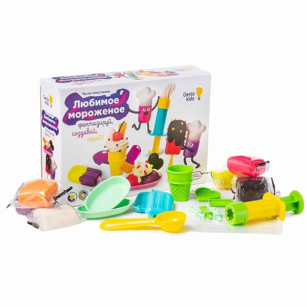 Набор для детской лепки Любимое мороженое Dream Makers TA2004. С набором Genio Kids «Любимое мороженое» можно создать десерт мечты! Внутри – удобные формочки и 6 ярких кусочков тесто-пластилина для создания и сервировки самых разных вариантов мороженого – от эскимо до пломбира в шариках, – а также аксессуары, благодаря которым мороженое можно дополнить креативным декором и топпингом.