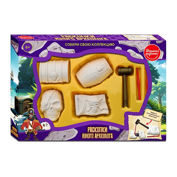 Такие детские раскопки знакомят с увлекательным миром археологии. Процесс тренирует мелкую моторику и внимание к деталям. Исследователь узнаёт новые факты о пиратстве и истории, пока извлекает сокровища на свет. Эта развивающая игрушка станет достойным подарком для любознательных детей, мечтающих открыть тайны морского мира.