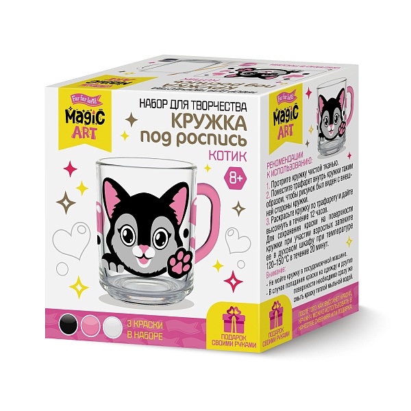 Не мойте кружку в посудомоечной машине. Высохшие краски не растворяются в воде. В случае попадания краски на одежду и другие поверхности необходимо сразу смыть краску теплой мыльной водой. Берегите краски от замерзания. Не подвергать механическому воздействию. Не использовать в качестве посуды! Избегать контактов с пищевыми продуктами.