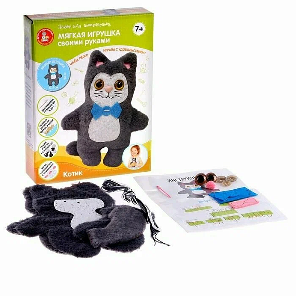 Мягкая игрушка из искусственного меха и фетра «Котик» – это набор для творчества, благодаря которому у ребёнка появится возможность сшить свою любимую игрушку. Создание игрушки своими руками способствует воспитанию усидчивости, развитию фантазии, творческого мышления, мелкой моторики и навыков шитья. В наборе есть все необходимое для изготовления игрушки. Набор для создания игрушки отлично подходит для поделки в детский сад и в школу. Очаровательная мягкая игрушка станет приятным подарком для ваших близких.