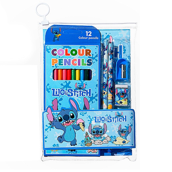 Набор канцелярских принадлежностей ( 6 предметов) (12цветных карандашей, 2 ч/г карандаша, точилка, ластик, блокнот А5) "Ушастик" ZIP-пакет