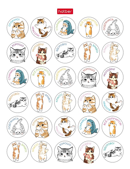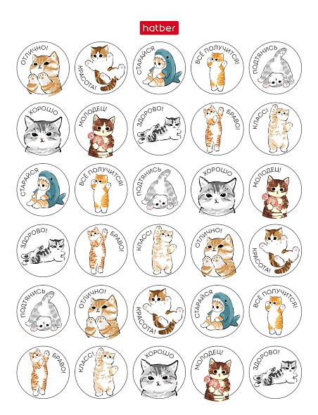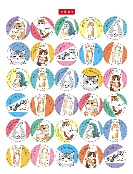 Набор НАКЛЕЕК А6ф 4л 115 шт серия -Оценки и поощрения_Котики- в пакете с европодвесом 090392