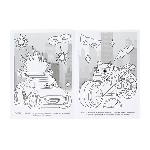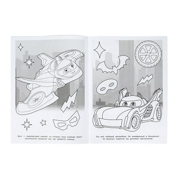Эта занимательная раскраска про отважного супергероя и крутые супергеройские тачки не только скрасит досуг ребёнка, но и поможет ему потренировать руку к письму. Внутри детей ожидают интересные картинки с чётким контуром и сюжетные тексты к ним. Благодаря удобному формату раскраску можно взять с собой в дорогу.