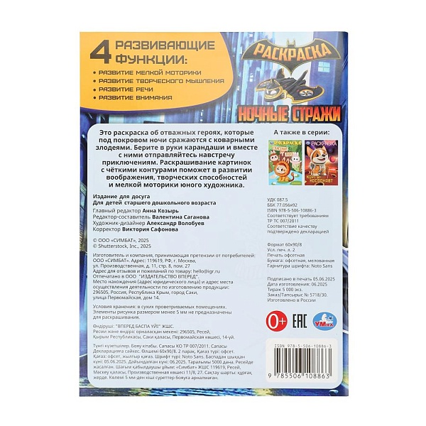 Раскраска «Ночные стражи» ТМ «УМка» обязательно понравится юным художникам: