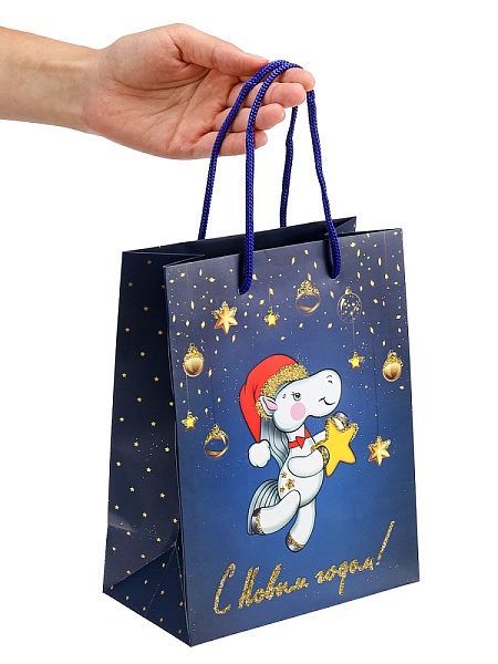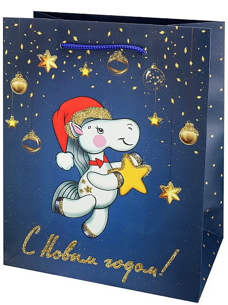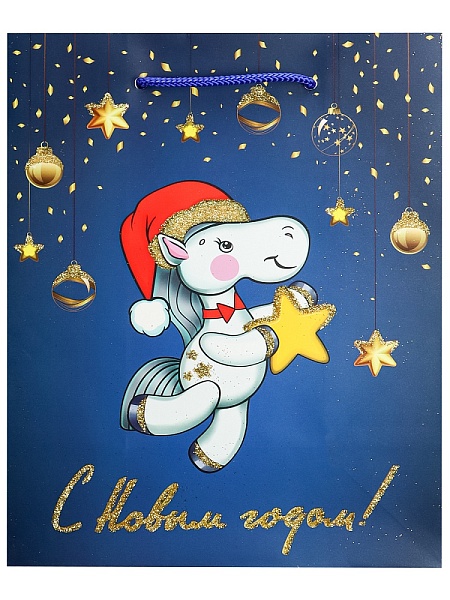 Пакет подароч. мат.лам. глит 18х23х10 см Лошадка со звездой ППК-2423