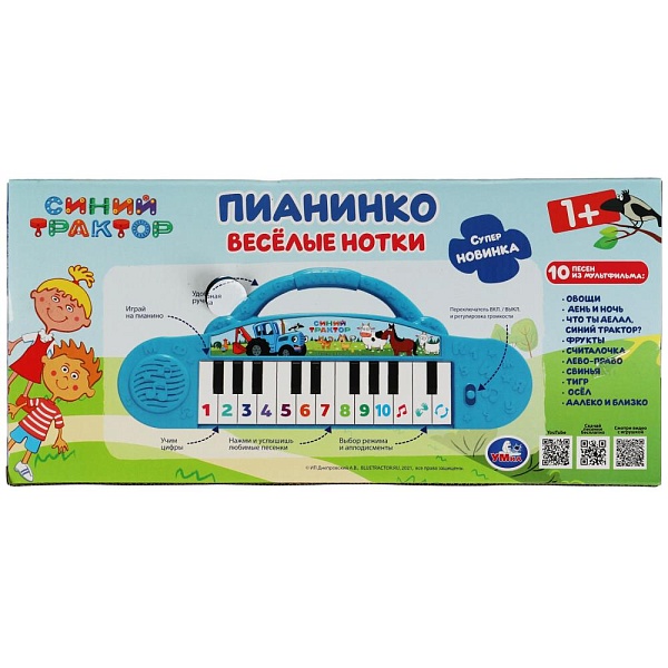 Музыкальное электропианино «Синий трактор. Весёлые нотки» ТМ «УМка» непременно понравится маленькому поклоннику мультсериала про приключения весёлого трактора и будет способствовать развитию его творческих способностей: