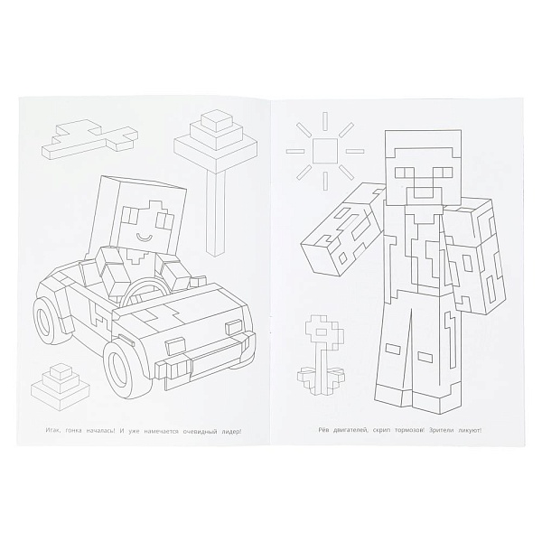 Эта увлекательная раскраска про приключения героев виртуальной реальности непременно понравится вашему ребёнку. В ней он найдёт интересные картинки с чёткими контурами и сюжетными текстами к ним. Данное издание станет отличным вариантом, чтобы взять его с собой в путешествие и скоротать время в дороге за раскрашиванием.