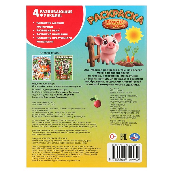 Раскраска «Прогулка по ферме» ТМ «УМка» – отличный подарок для юных художников: