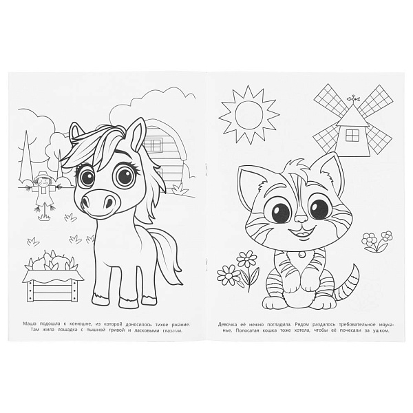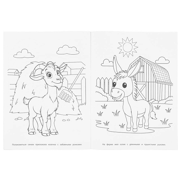 Эта увлекательная раскраска с забавными обитателями фермы непременно понравится вашему ребёнку. В ней он найдёт интересные картинки с чёткими контурами и сюжетными текстами к ним. Данное издание станет отличным вариантом, чтобы взять его с собой в путешествие и скоротать время в дороге за раскрашиванием.
