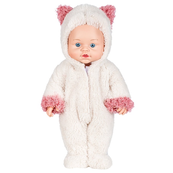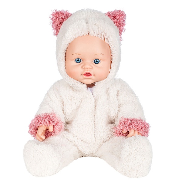 Кукла Пупс Малышка Котик 38.5 см Dream Makers PU14. Прекрасный подарок для Вашего ребенка. Очаровательная кукла пупс изготовлена из качественного пластика. Пупс одет в красивый комбинезончик из мягкого пушистого материала. На капюшоне комбинезона милые ушки. Черты лица пупса хорошо проработаны. У игрушки подвижные части тела.