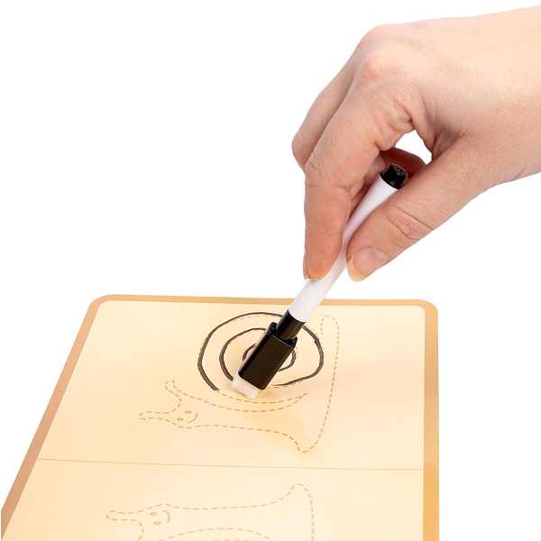 Обводите линии по контурам, создавая различные узоры и рисунки, и выполняйте штриховку. Не бойтесь ошибиться, ведь маркер легко стирается!