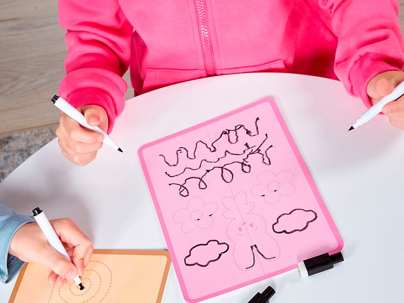 Выполнение упражнений в игре «Двумя руками» Пиши-Стирай развивает моторику и творческие навыки, внимание, воображение и логическое мышление.
