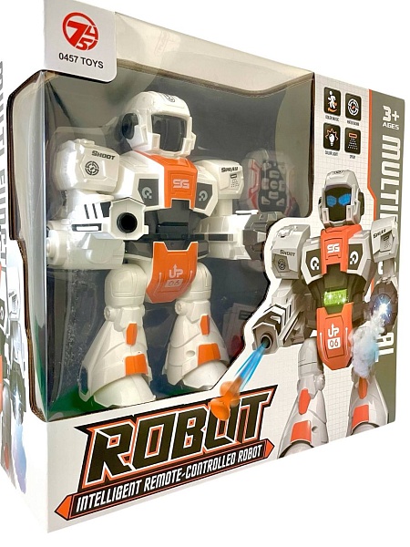 Самый технологичный робот на радиоуправлении 27 MHz с реалистичными спецэффектами! Стреляет гидрогелевыми пулями и присосками, выпускает пар, светится и двигается в 4-х направлениях. Программируемые действия и танцы под музыку превращают игру в настоящее шоу!