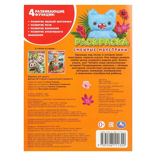 Раскраска «Смешные монстрики» ТМ «УМка» – отличный подарок для юных художников: