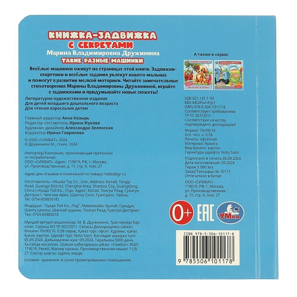 Такие разные машинки. Дружинина (книжка-задвижка с тригерами) 160х160мм 8стр 405731