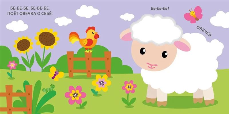Увлекательная тактильная книжка для малышей. Она познакомит вашего ребёнка с домашними животными, такими как кот, овечка, щенок, лошадка и другими.