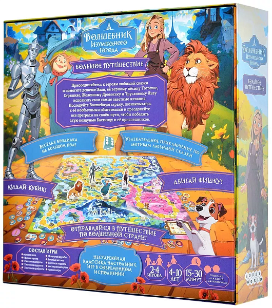 Любимая сказка, знакомые герои, классическая настольная игра – все чудесные компоненты на месте, и мы готовы творить волшебство! В этой коробке вас ждёт вихрь приключений, большое-пребольшое поле и фишки с полюбившимся героями. Конечно, без козней Бастинды не обойдётся, но мы-то знаем, что всегда побеждает дружба!