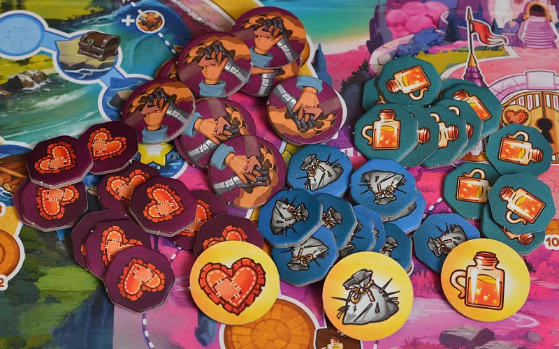 Бросайте кубик и двигайте фишку вперёд по Дороге из жёлтого кирпича. На пути будут встречаться различные преграды, которые вы сможете преодолеть, используя соответствующие жетоны – мудрости, храбрости или доброты. Если какого-то из жетонов не хватит, воспользуйтесь жетоном дружбы – он может заменить собой любой другой. А если и его не нашлось, можно пойти в обход. Каждая преграда на поле символизирует знакомый эпизод из приключений Элли – переправу через реку, посещение Изумрудного города или сражение с воронами Бастинды. Игра завершается, когда один из игроков преодолевает последнюю преграду – Ворота Розового замка. Для этого нужно вернуть в общий запас по одному жетону каждого вида. Тот, кому это удастся, становится победителем и получает благодарность от Элли и Тотошки, ведь они наконец-то смогут вернуться домой!