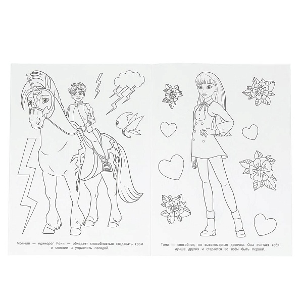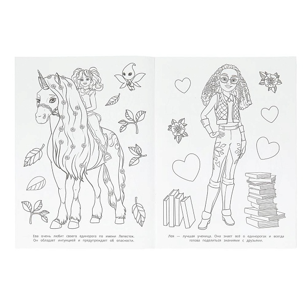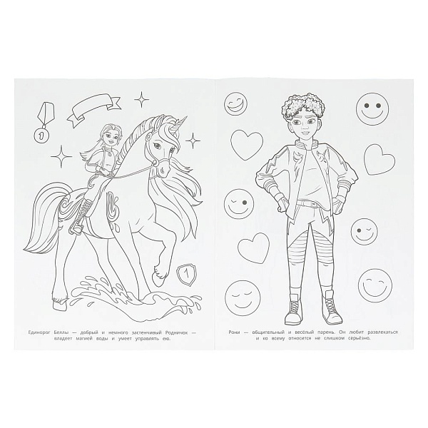 Эта увлекательная раскраска про приключения учеников магической академии с Острова единорогов непременно понравится вашему ребёнку. В ней он найдёт интересные картинки с чёткими контурами и сюжетными текстами к ним. Благодаря удобному формату раскраску можно взять с собой в дорогу.